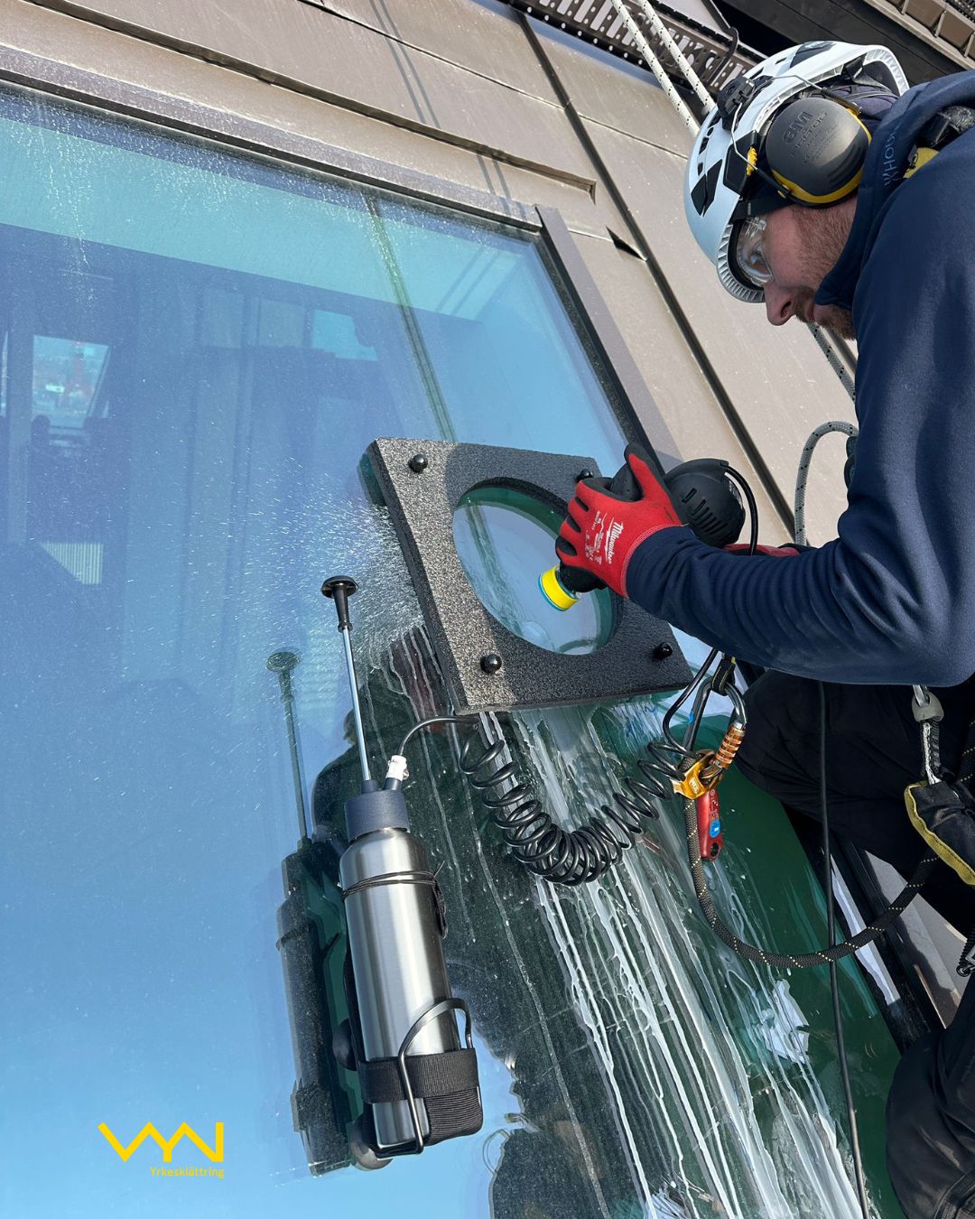 Utöver fönsterputs, tak- och fasadtvätt erbjuder VYN även glaspolering och glasrenovering på höjd som en del av vårt arbete med fasader och byggnaders yttre miljö. Glas utsätts över tid för både slitage och skador. Kalkfläckar, mineralbeläggningar och andra ytskador kan ofta åtgärdas med professionell glaspolering. Repor och andra ytskador kan i många fall renoveras utan att hela glaset behöver bytas.