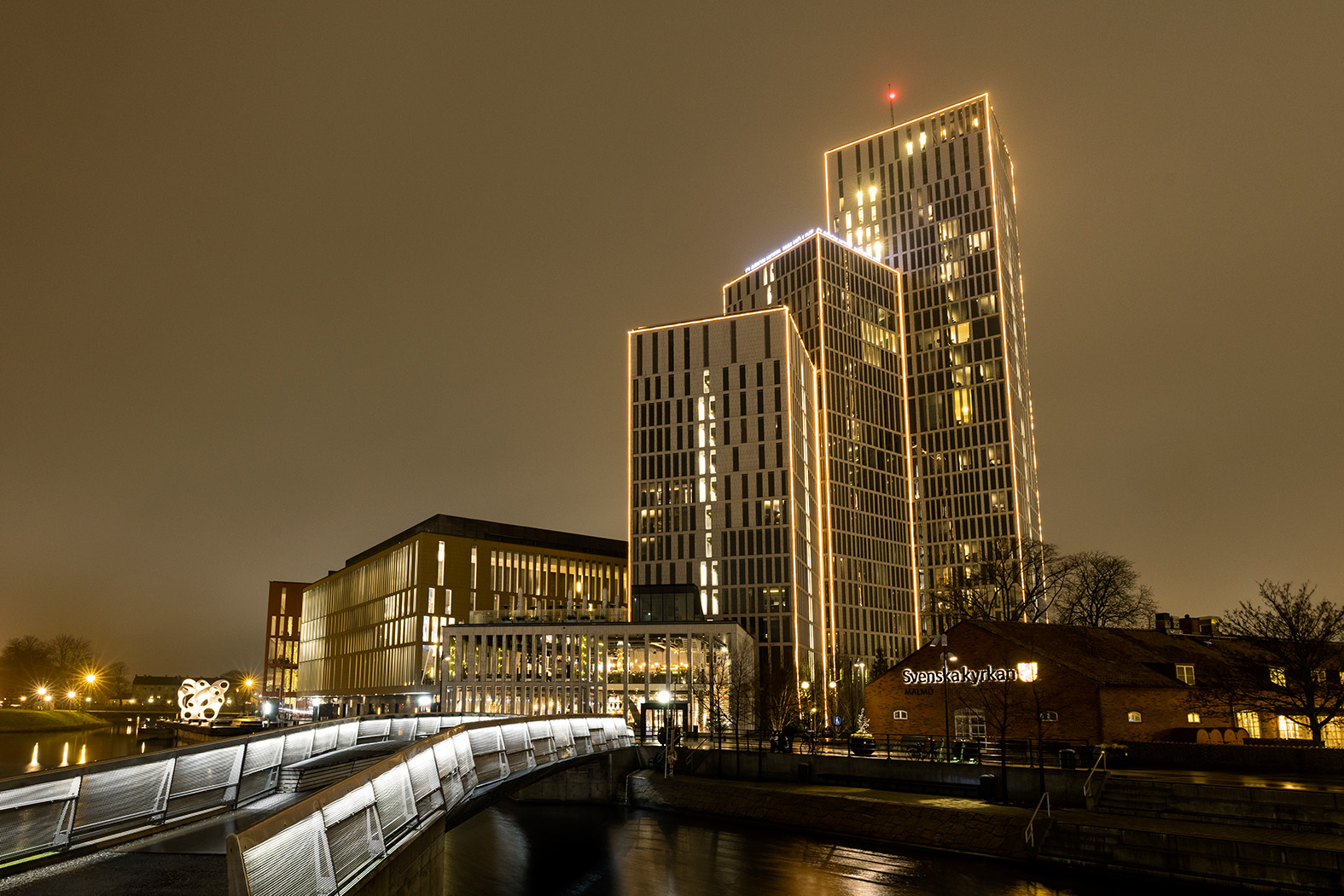 Som centralt konserthus, kongresscenter och hotell axlar Malmö Live en betydande roll i stadens skyline. Vintertid lyser vi upp konturerna med ledbelysning monterad från rep.