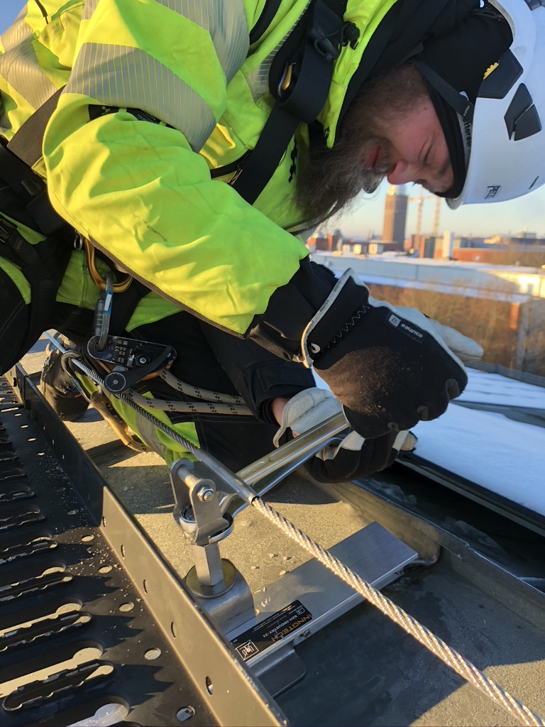 Hur ett säkert fallskydd för en fastighet ska planeras varierar från byggnad till byggnad. För befintliga fastigheter installerar vi fallskydd som säkerhetsräcken, fallskyddsnät, förankringspunkter och liknande efter behov. Om du har möjlighet, så är det absolut säkrast och mest kostnadseffektivt att ta med system för reparbete och fallskydd redan i planeringsstadiet inför din fastighet. I sådana projekt följer vi med dig hela vägen från planering till installation av ett fast system..