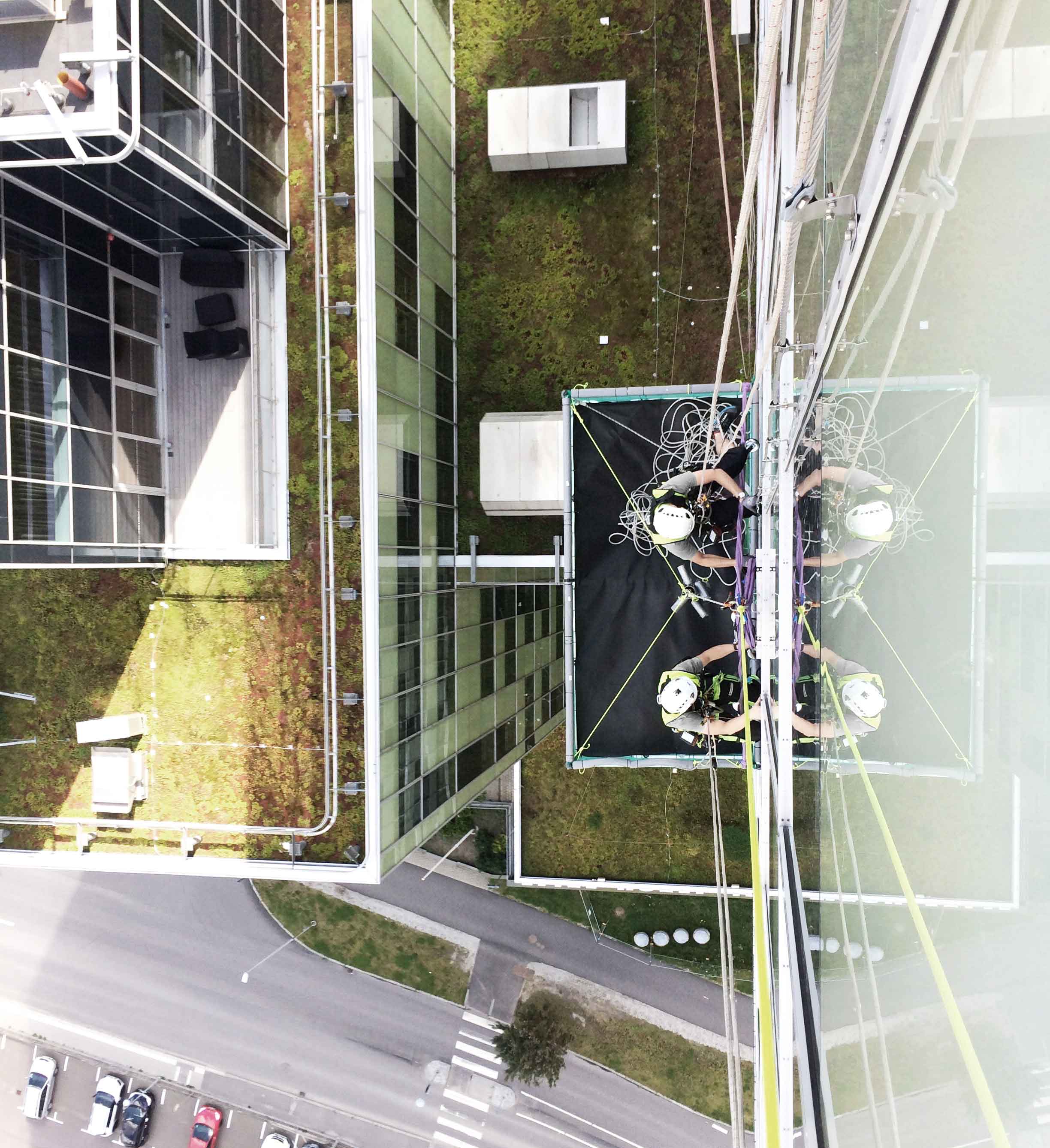Vi utför montageuppdrag på hög höjd med hjälp av rope access. Genom att arbeta från rep kan vi snabbt och enkelt genomföra olika typer av montage, inklusive installation och byte av glas, montering av skyltar, snörasskydd, belysning och andra detaljer.
