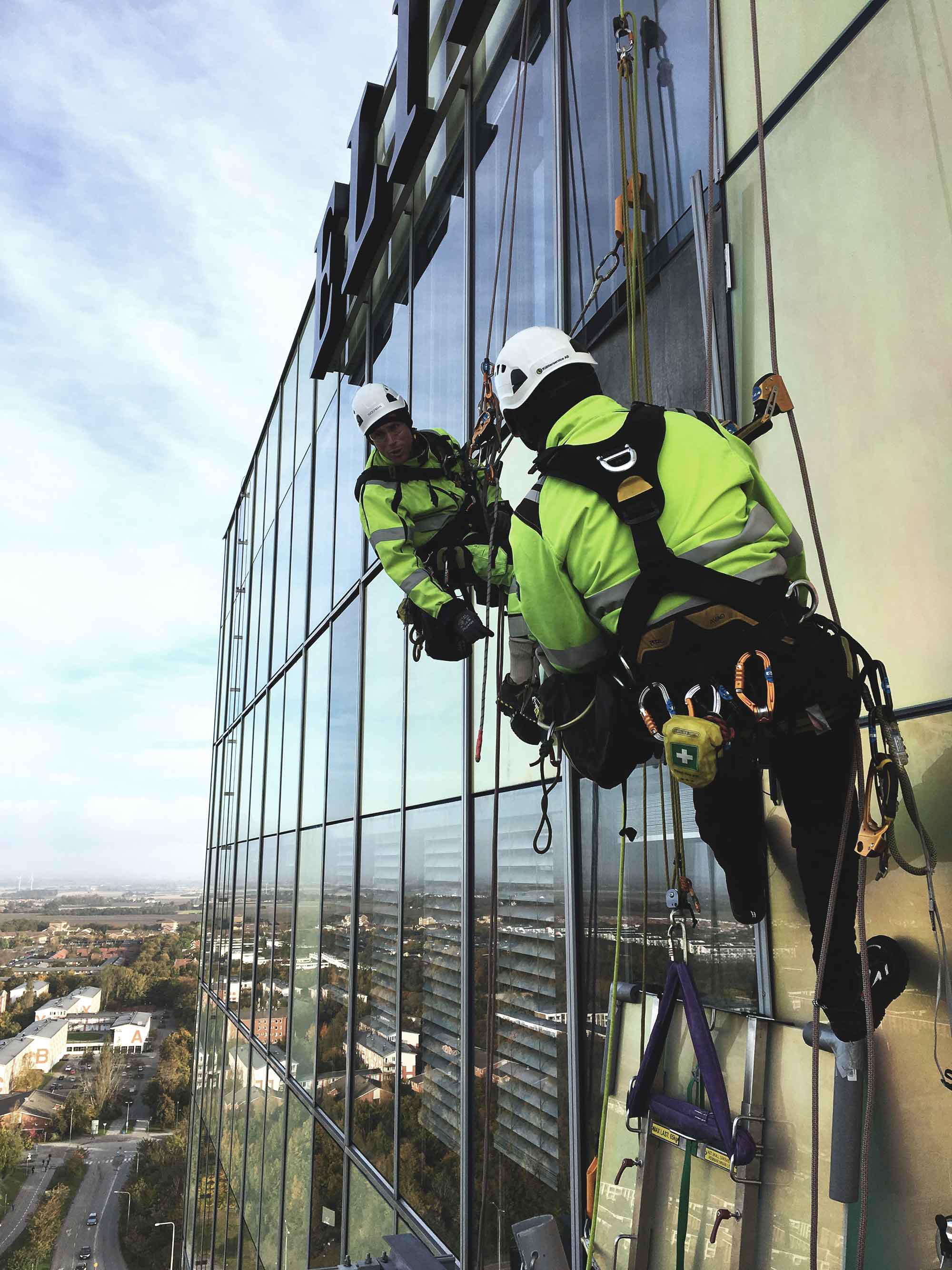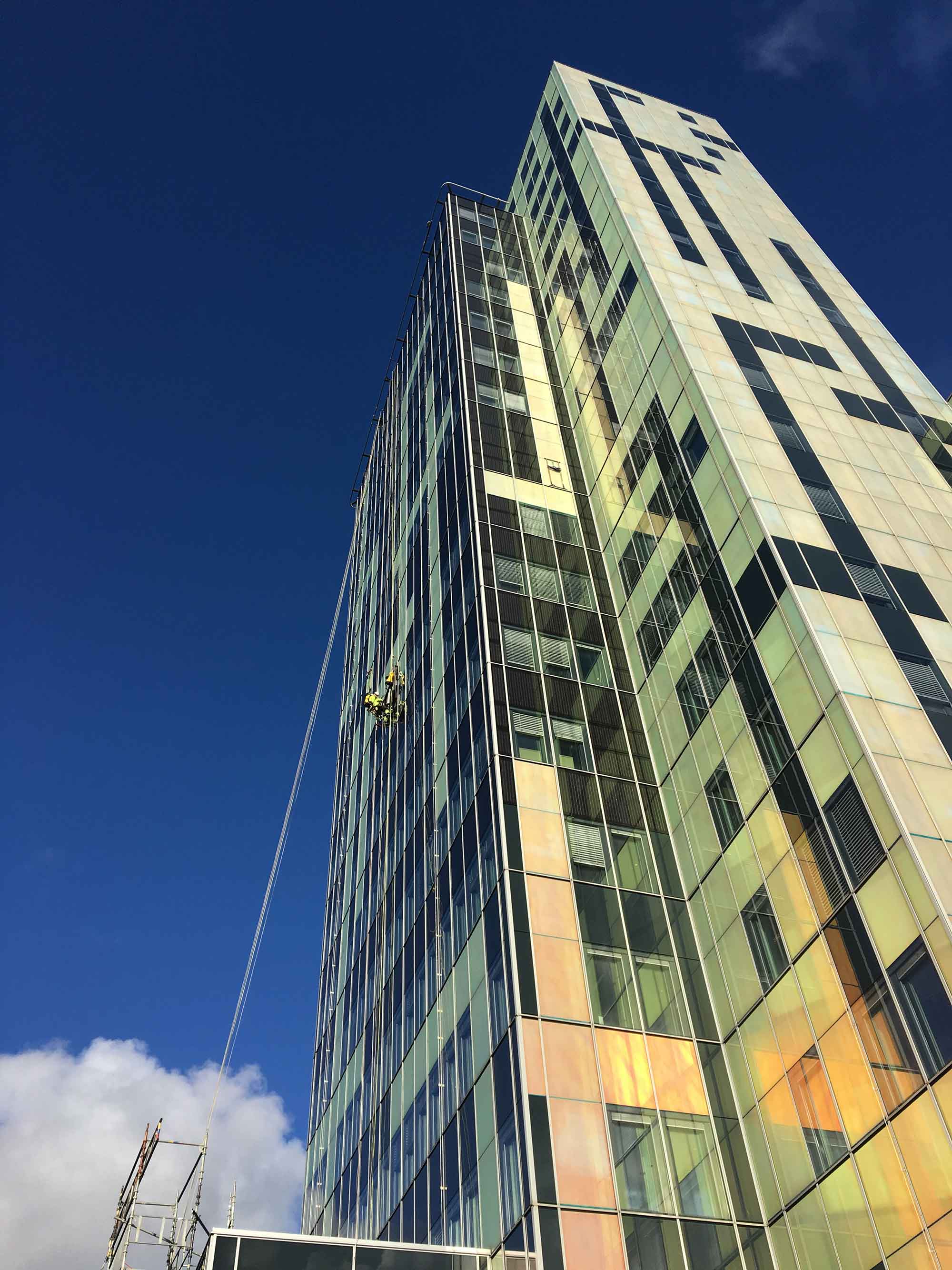 Ideon Gateway är en fastighet med hotell, restaurang, kontor och konferensanläggning. De 19 våningarna gör byggnaden till Lunds högsta hus. För att förbättra fasadernas skydd behövde vi tillfälligt lyfta ut totalt 3300 glaspaneler. Uppdraget krävde bland annat att vi tog fram två helt nya verktyg för att lyfta glas.